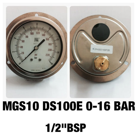 NUOVA FIMA Pressure Gauges 4 นิ้ว 0-16BAR (220PSI) ออกหลังหน้าแปลน เกลียว 1/2" BSP ทองเหลือง
