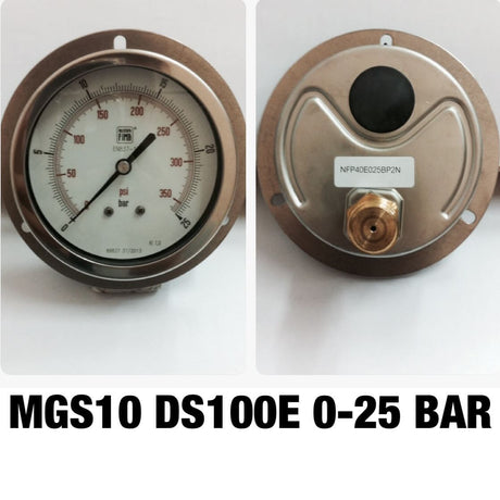 NUOVA FIMA Pressure Gauges 4 นิ้ว 0-25BAR (350PSI) ออกหลังหน้าแปลน เกลียว 1/2" BSP ทองเหลือง