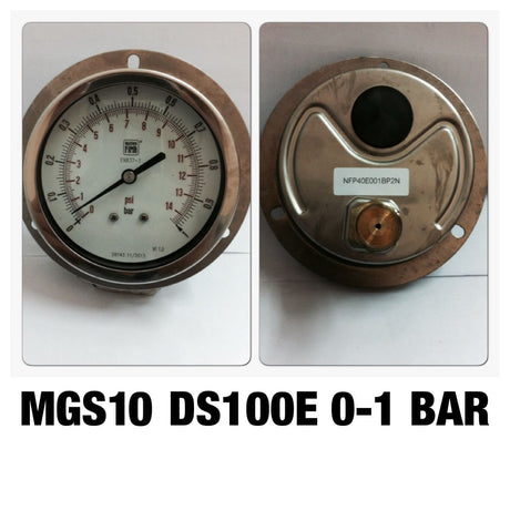 NUOVA FIMA Pressure Gauges 4 นิ้ว 0-1BAR (14PSI) ออกหลังหน้าแปลน เกลียว 1/2" NPT ทองเหลือง