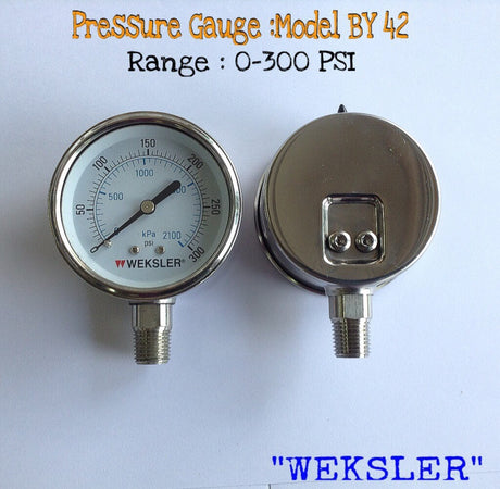 WEKSLER Pressure Gauges "WEKSLER" 2.5 นิ้ว 0-2100KPA/0-300PSI ออกล่าง 1/4" สแตนเลส NPT