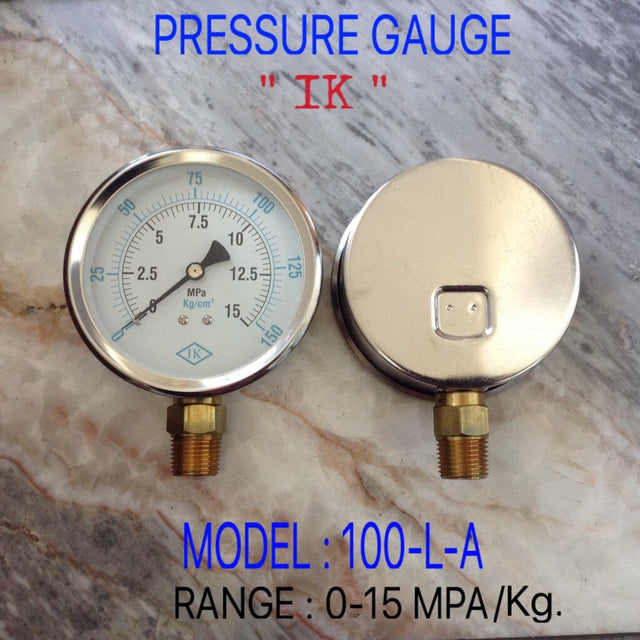 IK Pressure Gauges "IK" 4 นิ้ว 0-15MPA /0-150KG ออกล่าง 1/2" ทองเหลือง NPT - - is backordered and will ship as soon as it is back in stock.
