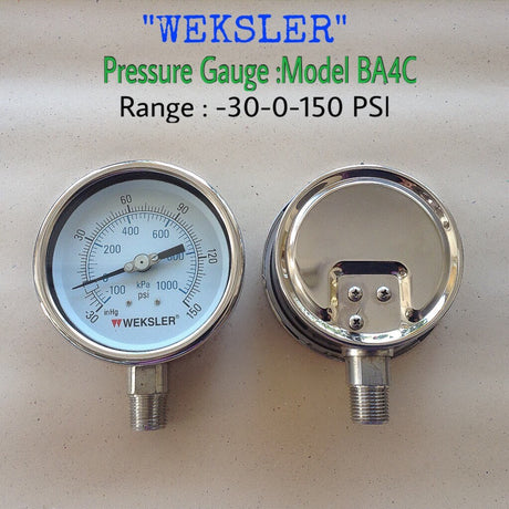 - Changwad Co.,Ltd. - WEKSLER Pressure Gauges "WEKSLER" 4 นิ้ว -100-200KPA/-30-30PSI ออกล่าง 1/2" สแตนเลส NPT 3,179.00 ฿Unit price /Unavailable