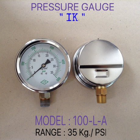 - Changwad Co.,Ltd. - IK Pressure Gauges "IK" 4 นิ้ว 0-2.5KG/0-35PSI ออกล่าง 1/2" ทองเหลือง NPT 1,925.00 ฿Unit price /Unavailable