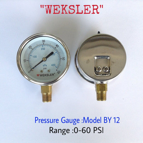 - Changwad Co.,Ltd. - WEKSLER Pressure Gauges "WEKSLER" 2.5 นิ้ว 0-400KPA/0-60PSI ออกล่าง 1/4" ทองเหลือง NPT 935.00 ฿Unit price /Unavailable