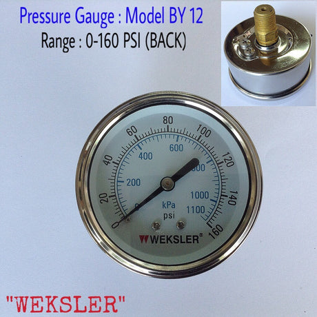 - Changwad Co.,Ltd. - WEKSLER Pressure Gauges "WEKSLER" 2.5 นิ้ว 0-1100KPA/0-160PSI ออกหลัง 1/4" ทองเหลือง NPT 1,815.00 ฿Unit price /Unavailable