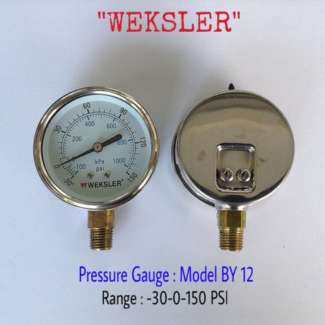 - Changwad Co.,Ltd. - WEKSLER Pressure Gauges "WEKSLER" 2.5 นิ้ว 0-1000KPA/0-150PSI ออกล่าง 1/4" ทองเหลือง NPT 935.00 ฿Unit price /Unavailable