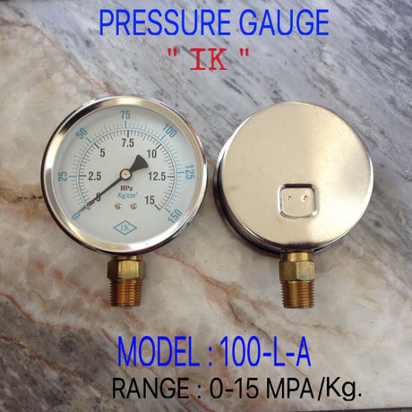 - Changwad Co.,Ltd. - IK Pressure Gauges "IK" 4 นิ้ว 0-15MPA /0-150KG ออกล่าง 1/2" ทองเหลือง NPT 2,365.00 ฿Unit price /Unavailable