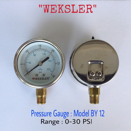 - Changwad Co.,Ltd. - WEKSLER Pressure Gauges "WEKSLER" 2.5 นิ้ว 0-200KPA/0-30PSI ออกล่าง 1/4" ทองเหลือง NPT 935.00 ฿Unit price /Unavailable
