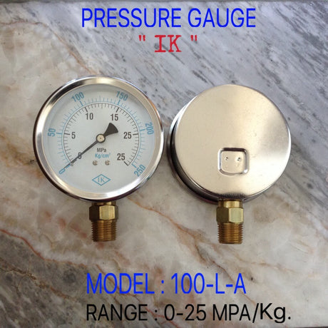 - Changwad Co.,Ltd. - IK Pressure Gauges "IK" 4 นิ้ว 0-25MPA /0-250KG ออกล่าง 1/2" ทองเหลือง NPT 2,365.00 ฿Unit price /Unavailable