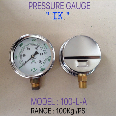 - Changwad Co.,Ltd. - IK Pressure Gauges "IK" 4 นิ้ว 0-7KG/0-100PSI ออกล่าง 1/2" ทองเหลือง NPT 1,925.00 ฿Unit price /Unavailable