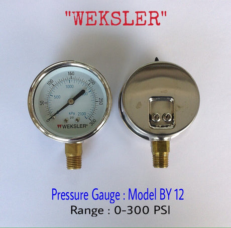 - Changwad Co.,Ltd. - WEKSLER Pressure Gauges "WEKSLER" 2.5 นิ้ว 0-2100KPA/0-300PSI ออกล่าง 1/4" ทองเหลือง NPT 935.00 ฿Unit price /Unavailable