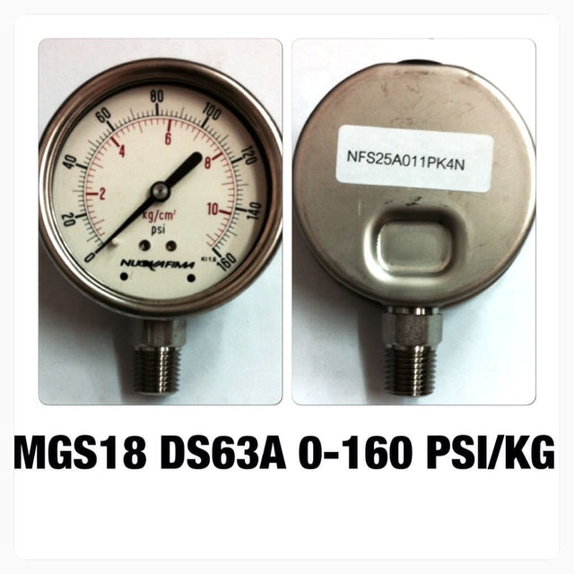 NUOVA FIMA Pressure Gauges 2.5 นิ้ว 0-10 KG (160PSI) ออกล่าง เกลียว 1/4" NPT สแตนเลส - - is backordered and will ship as soon as it is back in stock.
