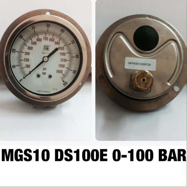 NUOVA FIMA Pressure Gauges 4 นิ้ว 0-100BAR (1400PSI) ออกหลังหน้าแปลน เกลียว 1/2" NPT ทองเหลือง - - is backordered and will ship as soon as it is back in stock.
