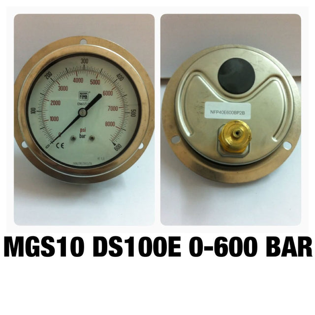 NUOVA FIMA Pressure Gauges 4 นิ้ว 0-600BAR (8000PSI) ออกหลังหน้าแปลน เกลียว 1/2" BSP ทองเหลือง - - is backordered and will ship as soon as it is back in stock.