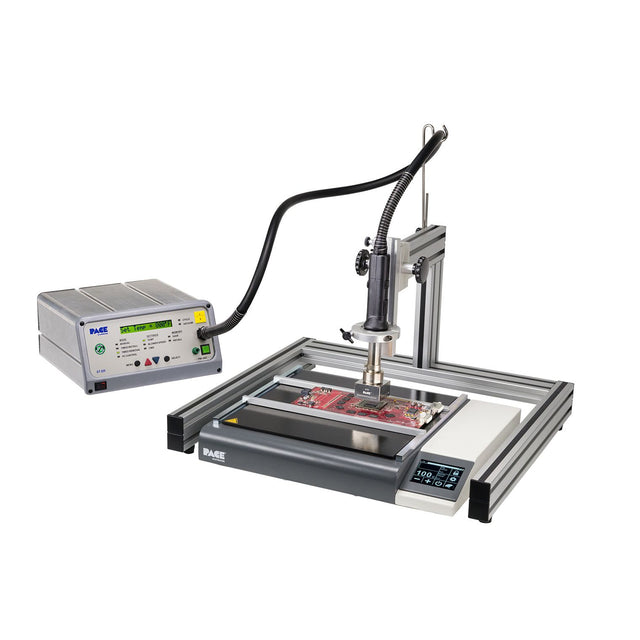 - เครื่องเป่าลมร้อนที่มีแท่นสำหรับจับบอร์ดได้ตามความเหมาะสม และเมื่อถอดไอซีได้แล้วจะมี Vaccum สำหรับจับ ICได้