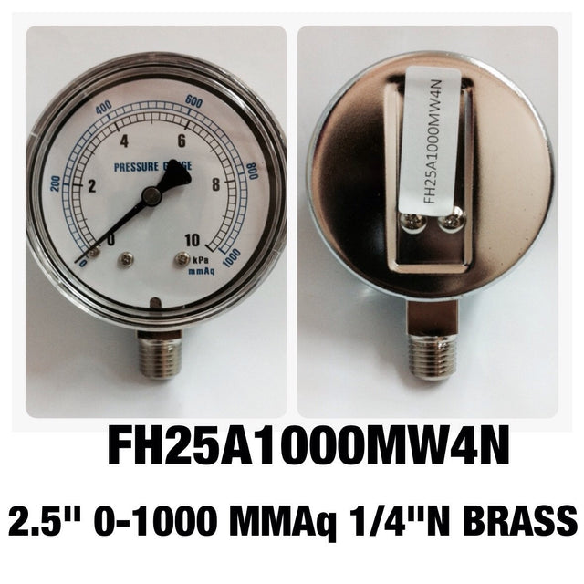 PRESSURE GAUGE 2.5 นิ้ว ออกล่าง 1/4" 0-10 KPA 0-1000 MMAq.