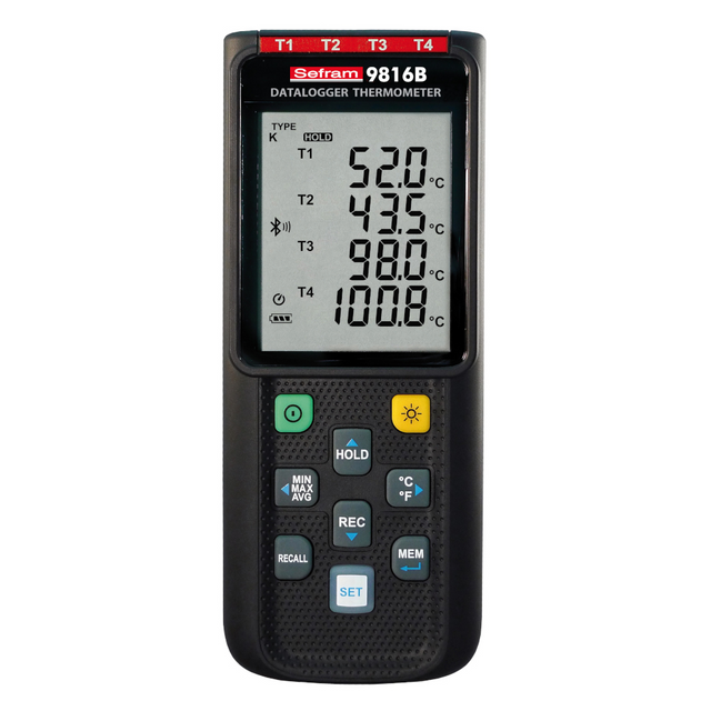 Sefram 9814 และ Sefram 9816B เป็นเครื่องวัดค่าอุณหภูมิที่มีถึง 4 ช่องสัญญาณ ต้องใช้งานควบคู่กับเซนเซอร์วัดค่าอุณหภูมิ (Thermocouple) ตัวเครื่องถูกออกแบบมาให้ใช้งานง่าย หน้าจอแสดงผลพร้อมกันทุกช่องสัญญาณและมีค่า Sample Rate ที่สูง ทำให้มีการตอบสนองต่อค่าอุณหภูมิที่รวดเร็ว