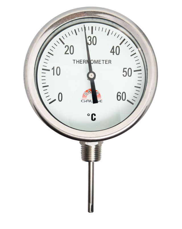 Thermometer Temperature gauge เกจวัดอุณหภูมิ หน้าปัด 3" เกลียวออกข้าง 1/2" NPT ก้านยาว 50 mm ยี่ห้อ Safe Gauge - 60 C is backordered and will ship as soon as it is back in stock.